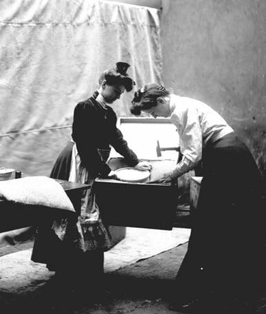 Selbst ist die Frau, die mit Hammer und Nägeln eine energiesparende Kiste zimmert. Die Entwicklung der Kochkiste fiel zusammen mit der frühen Suffragetten-Bewegung gegen Ende des 19. Jahrhunderts. Immer mehr Frauen wollten (oder mussten) arbeiten und hatten weniger Zeit für den Haushalt. Die Kochkiste befreite sie vom Herd.